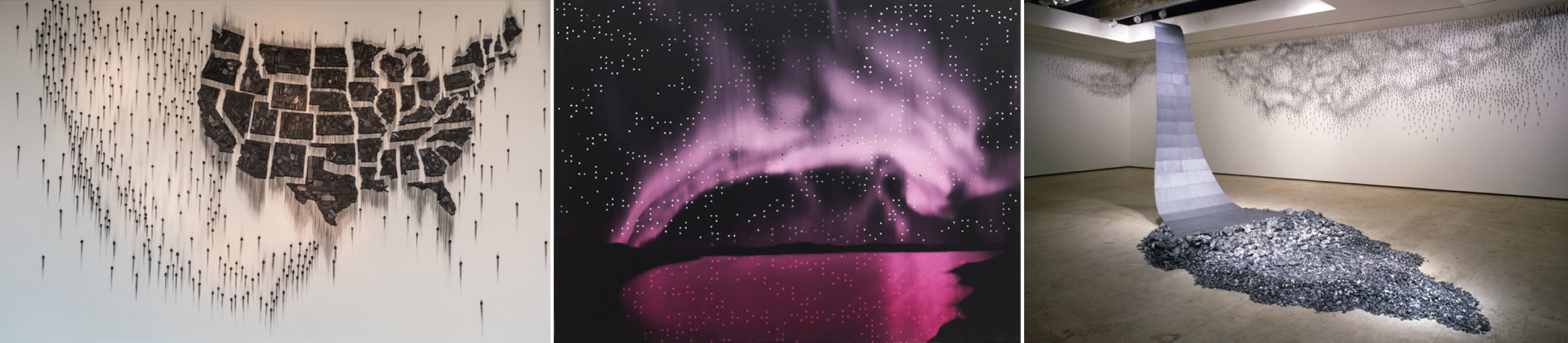 On view now through January 3, 2021, Teresita Fernández: Elemental at Phoenix Art Museum presents nearly 60 large-scale works that expand on notions of landscape and the psychology of looking and reinterpret the relationship between material, history, nature, and the sociopolitical references tied to place. The first major traveling exhibition and retrospective of Fernández’s work—and the first exhibition co-organized by Phoenix Art Museum and Pérez Art Museum Miami—Elemental spans the mid-1990s to the present, showcasing immersive artworks and environments made from materials such as silk, glass, graphite, mirrors, onyx, and charcoal, and that contemplate the landscape as a natural setting, a place for social interaction, and a canvas for political violence.